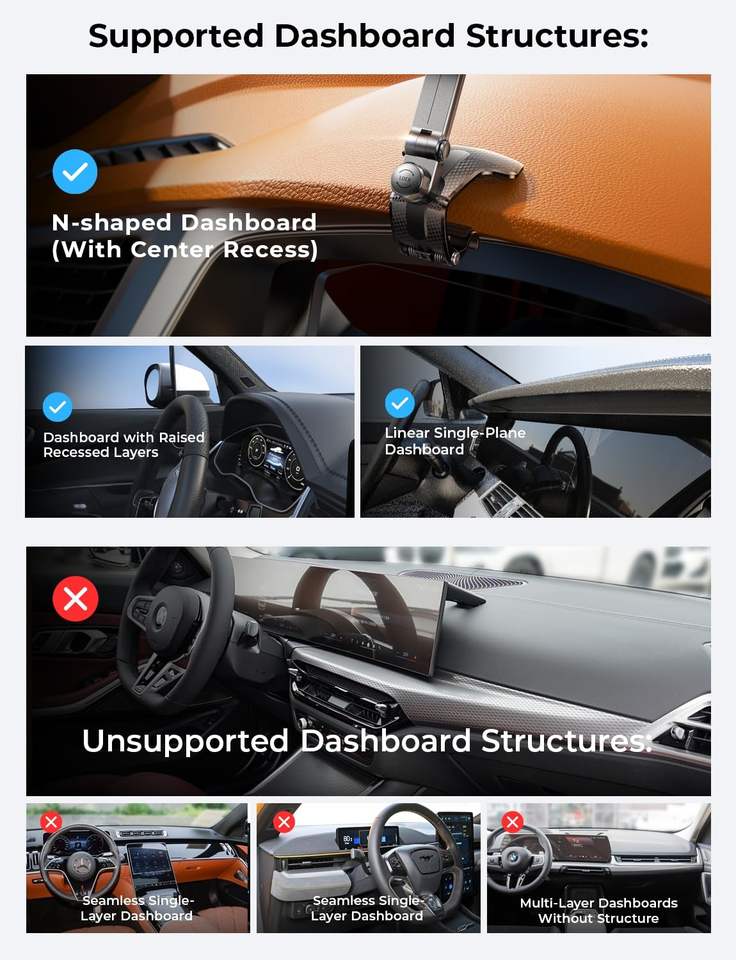 ที่วางโทรศัพท์ในรถยนต์แบบแม่เหล็ก, ที่ยึดแดชบอร์ด, คลิปกระจกมองหลัง