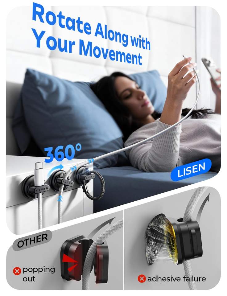 ชื่อสินค้า:ลิเซน 360° คลิปหนีบสายแม่เหล็กแบบหมุนได้ 6 แพ็ค