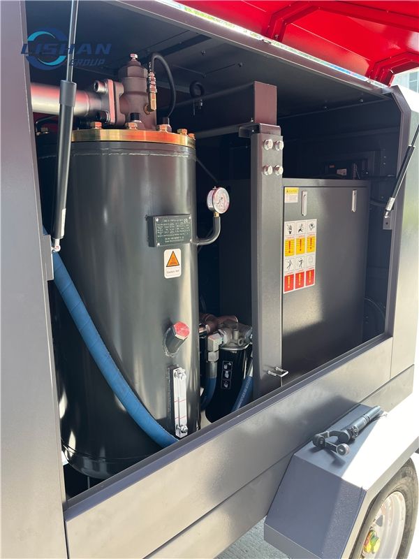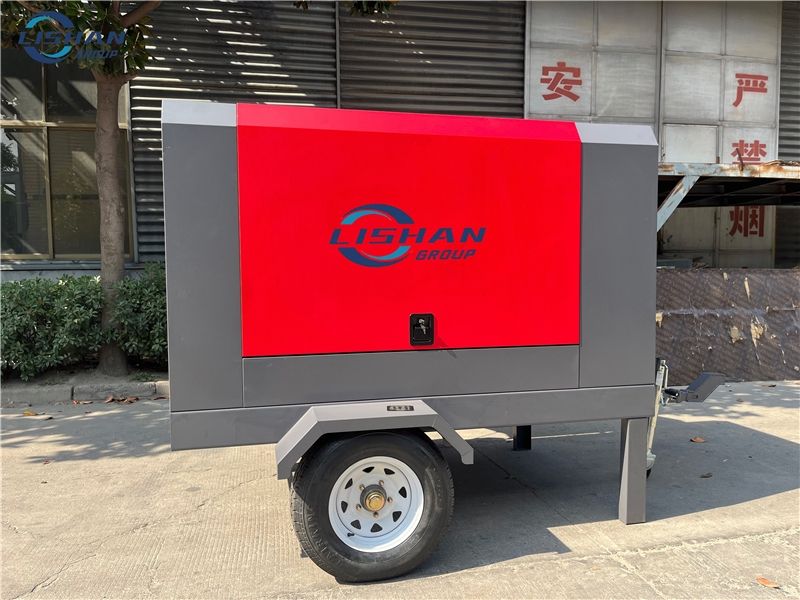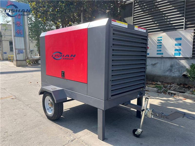 เครื่องอัดอากาศแบบสกรูเคลื่อนที่ LISHAN สำหรับงานกลางแจ้ง ใช้หล่อลื่นด้วยน้ำมัน สำหรับงานเหมืองและเหมืองหิน ใช้ไฟ AC กำลังไฟ 132 กิโลวัตต์ ระบายความร้อนด้วยอากาศ ทำงานเงียบ