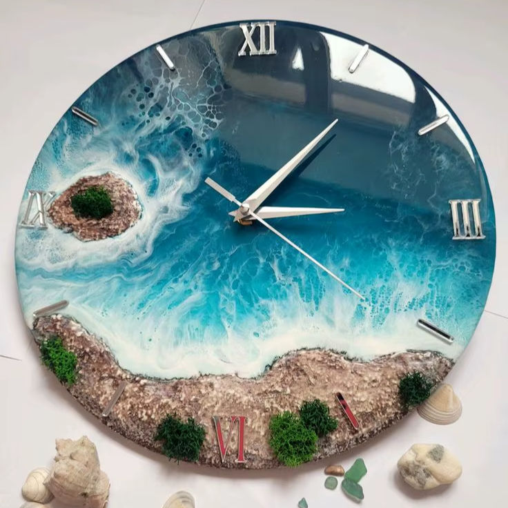 นาฬิกาติดผนังทำจากเรซินที่มีเอกลักษณ์ศิลปะทำด้วยมือนาฬิกาแขวนผนังศิลปะเรซินจากอินเดีย