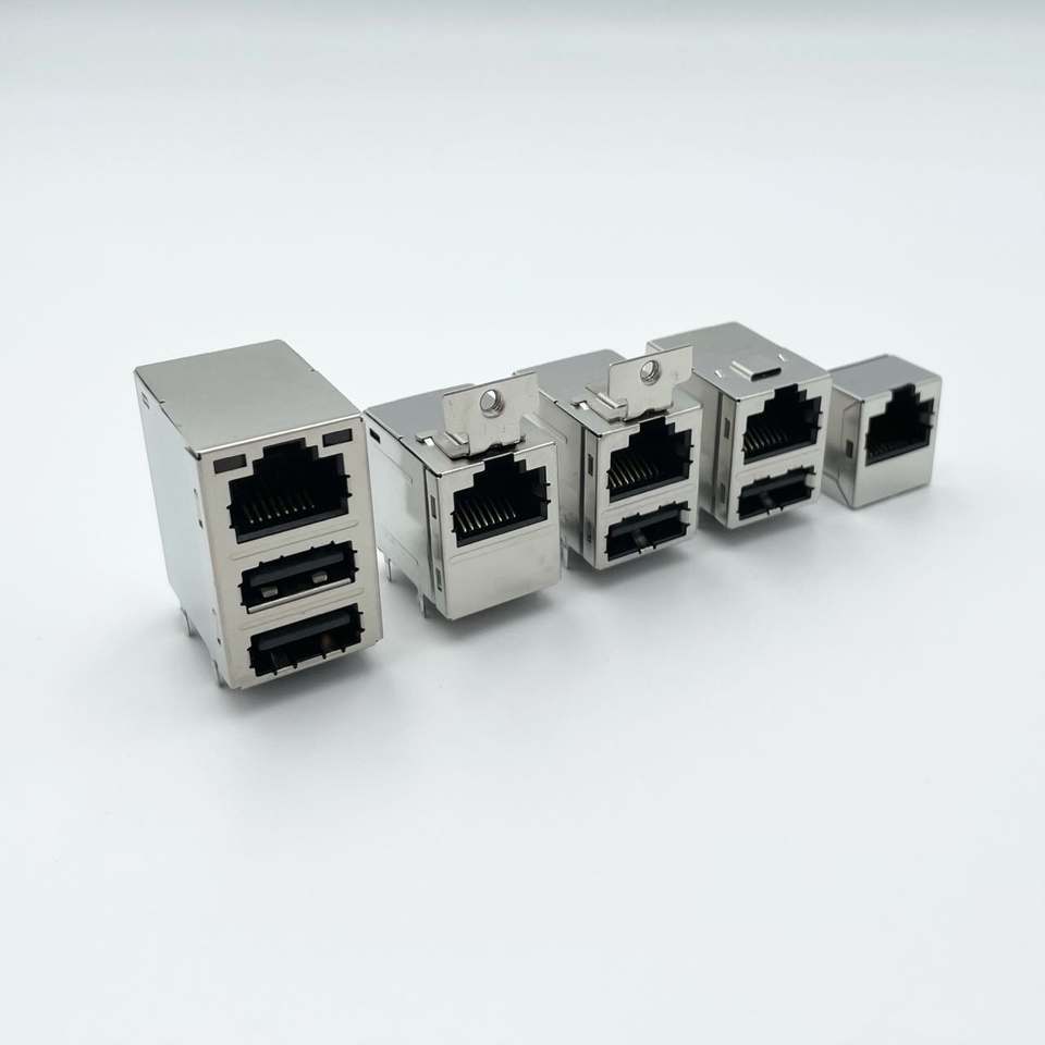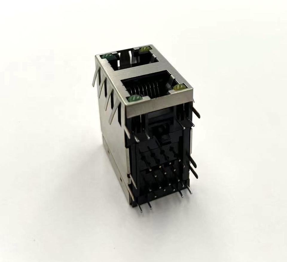 Lite RJ45 2x1พอร์ต Cat5E ช่องเสียบ8P8C ขั้วต่ออีเทอร์เน็ต LED EMI นิ้วมุมขวาป้องกันรายการด้านล่างจุ่ม g/f ชุบ PBT