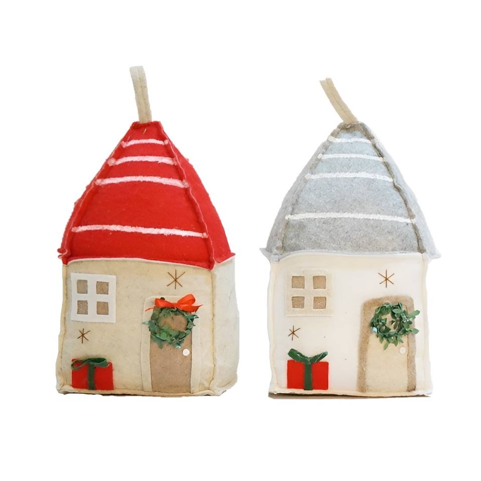 ที่กั้นประตูบ้านทรงบ้านเล็ก สีเทา/แดง ทำจากผ้าสักหลาด ขนาด 17x11 สูง 28 ซม. คละสี