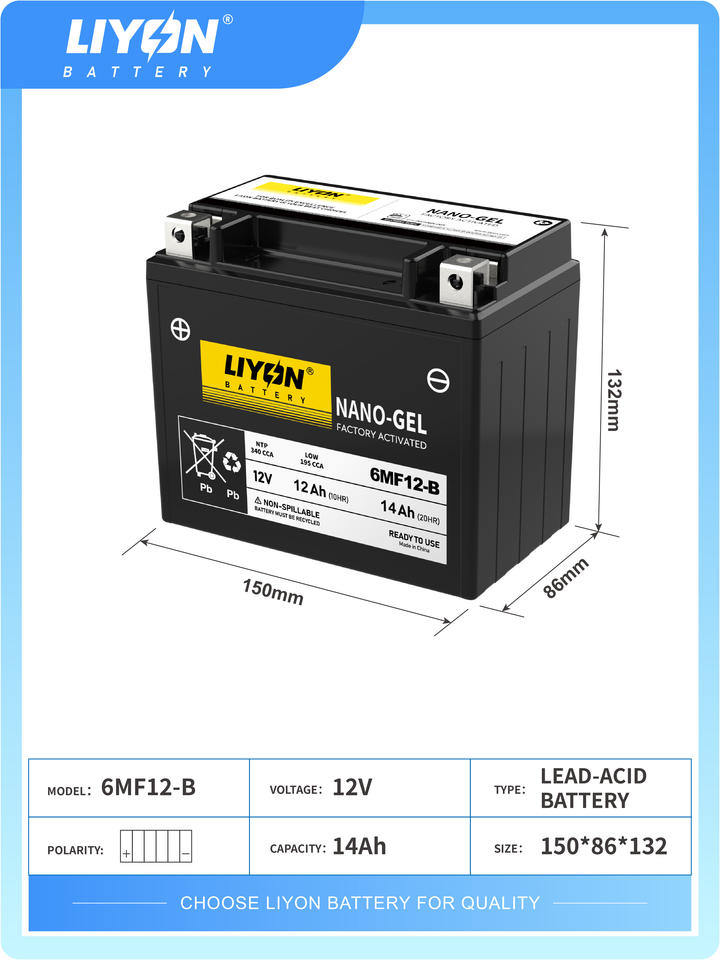 แบตเตอรี่มอเตอร์ไซค์ LIYON 6MF12-B 12V 14AH อุปกรณ์เสริมมอเตอร์ไซค์ สำหรับ BMW Ducati Honda Yamaha