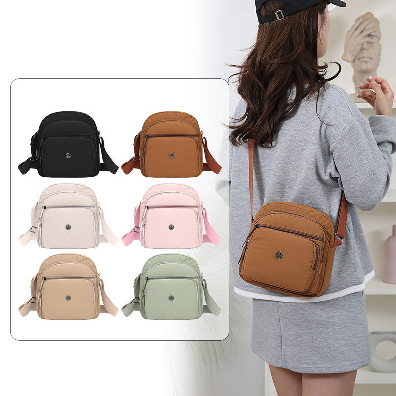 กระเป๋าสะพายข้างผู้หญิง LJDS39 สีคาราเมล ทรงสี่เหลี่ยมแนวนอน ปิดซิป มีช่องใส่โทรศัพท์หลายชั้น ทนทาน ใช้ได้ทุกวัน