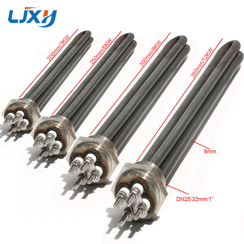 ฮีตเตอร์น้ำร้อนทันที LJXH DN25 1 นิ้ว กำลังไฟ 3KW/6KW/12KW ผลิตจากสแตนเลส 304 พร้อมท่อสีเขียว มีน็อตภายในและอะแดปเตอร์