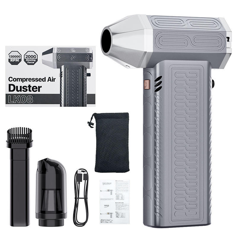 LK08 เครื่องเป่าลมอัด 130000 รอบต่อนาที ใช้พลังงานจากแบตเตอรี่ ใช้ได้สองแบบสำหรับทำความสะอาดรถยนต์และบ้าน พร้อมหัวฉีด 2 หัว