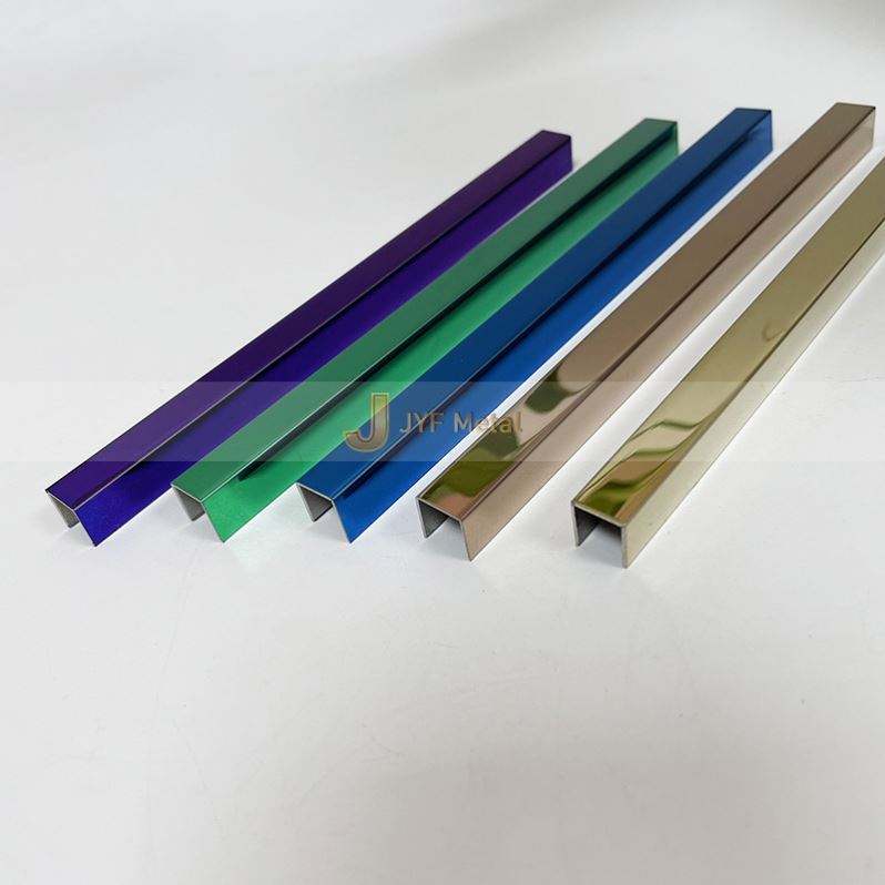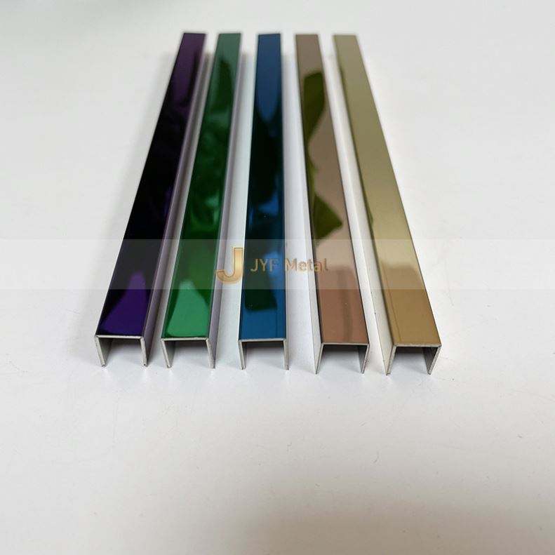 LL158 แถบตกแต่งโลหะคุณภาพสูง ตัวอย่างฟรี รูปตัวยู สำหรับกระเบื้องผนังและพื้น แถบเชื่อมต่อแบบขัดเงา ทำจากสแตนเลส