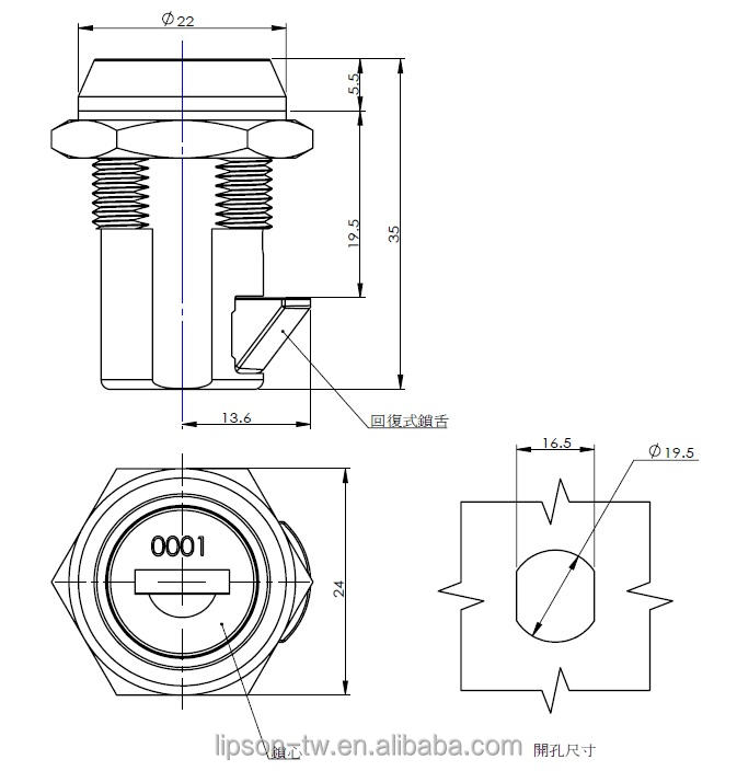LM-826-K72-3อุปกรณ์กักเก็บพลังงานอัจฉริยะแบบกดเพื่อปิดตัวล็อคแบบมีท่อ