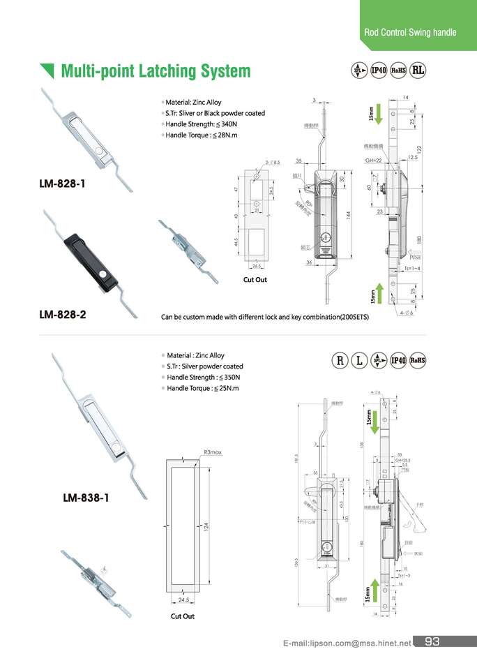 กุญแจล็อคแผงควบคุมไฟฟ้าแบบฝัง LM-840-5-2 พร้อมมือจับแบบสวิง