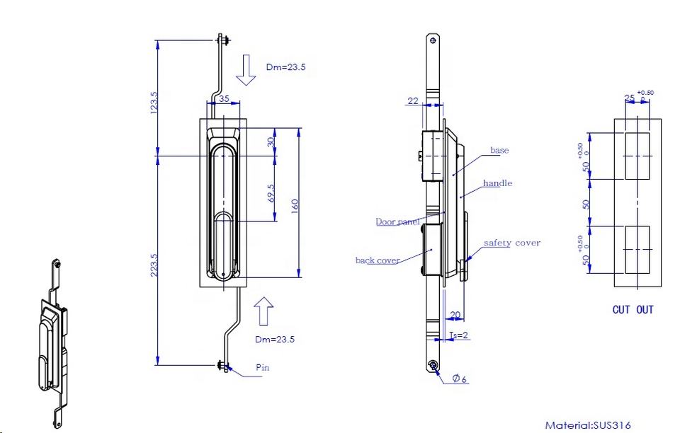 ระบบล็อคแผงควบคุมแบบหลายจุด รุ่น LM-874-32 สำหรับสถานีกักเก็บพลังงาน พร้อมก้านสแตนเลส ระบบล็อคแบบหมุน และระบบล็อค 3 จุด