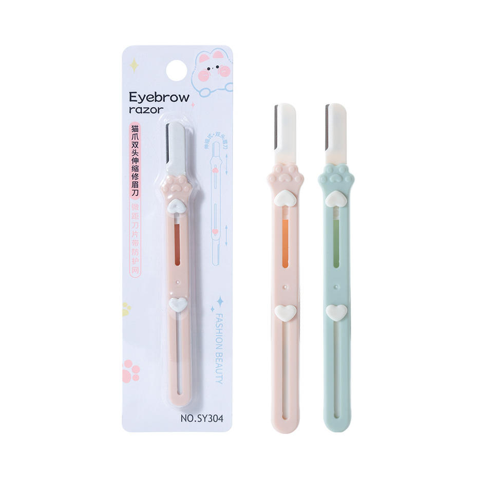 มีดโกนคิ้วสองหัว LMLTOP รุ่น Cat Paw แบบยืดหดได้ สีชมพูเขียว วัสดุ ABS สแตนเลส SY304