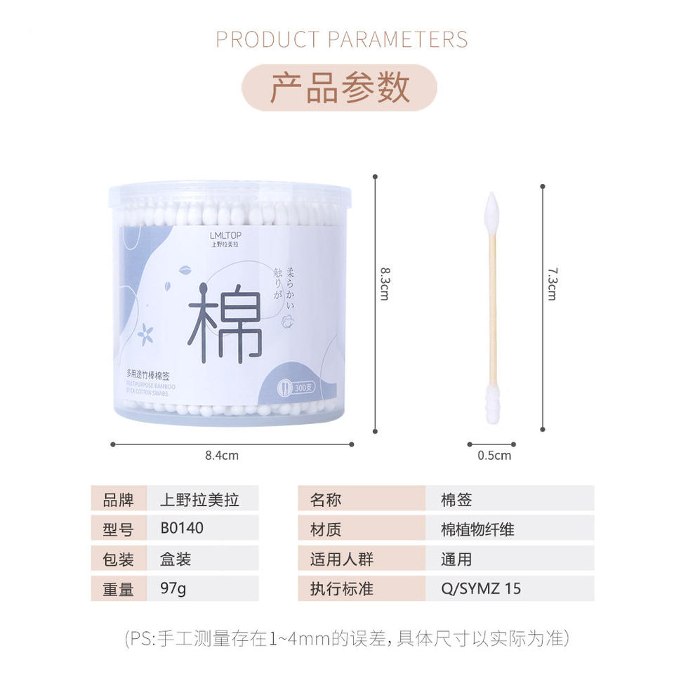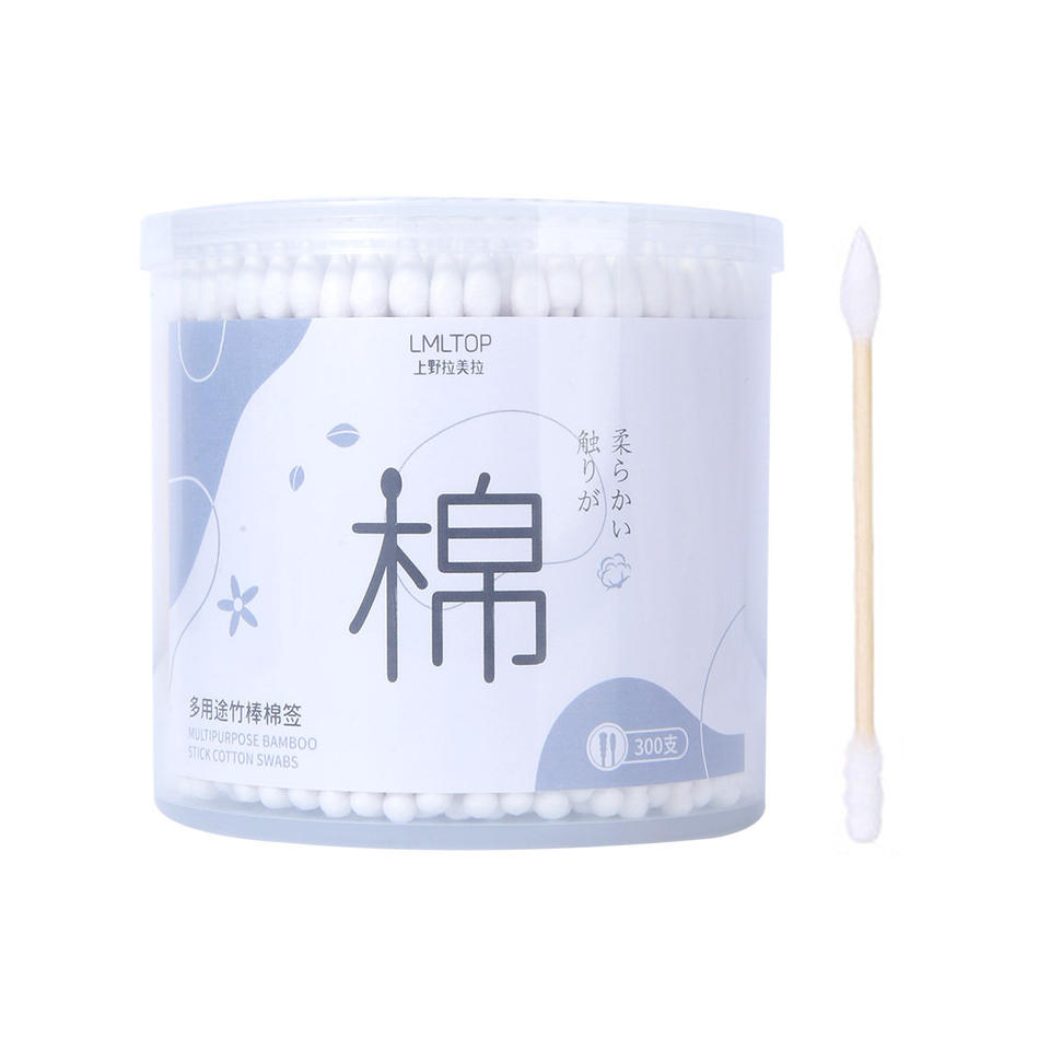 สำลีก้านไม้ไผ่ LMLTOP 300 ชิ้น แบบสองด้าน สำหรับเช็ดเครื่องสำอางและใช้งานทั่วไป
