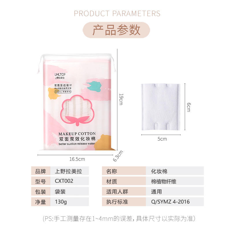 แผ่นสำลีเช็ดเครื่องสำอางแบบสองด้าน LMLTOP 222 ชิ้น หนาพิเศษ ใช้ได้ทั้งใบหน้าและดูแลเล็บ บรรจุในถุง