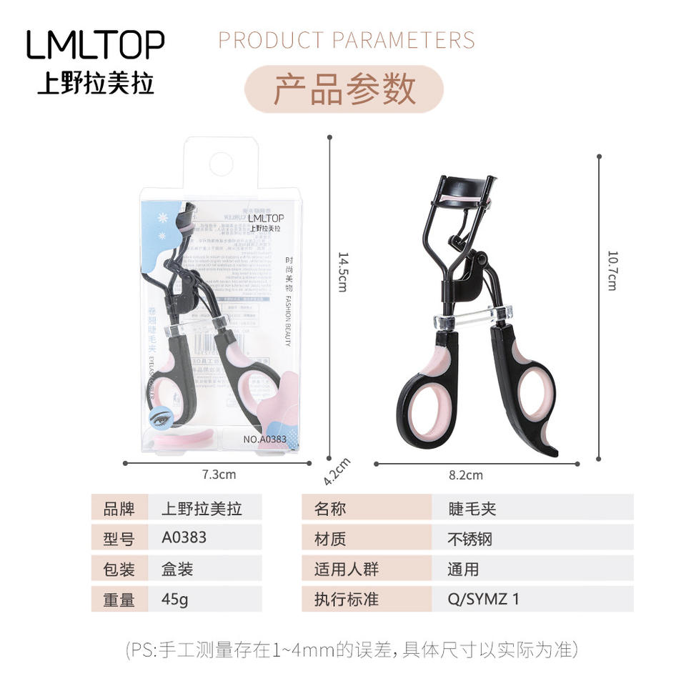ที่ดัดขนตา LMLTOP สแตนเลสสตีล 3 มิติ มุมกว้าง พร้อมแถบกาว A0383