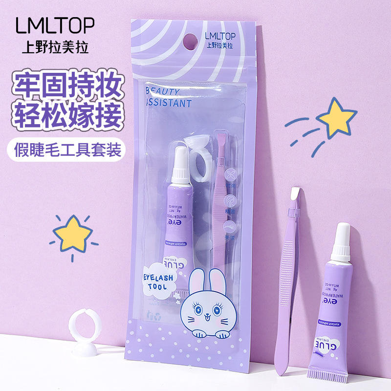 ชุดอุปกรณ์ต่อขนตาปลอม LMLTOP สีม่วง พร้อมกาว แหนบ และที่ดัดขนตา รุ่น SY024