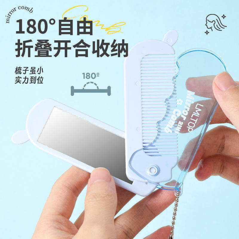 หวีพับได้ LMLTOP พร้อมกระจก ขนาดใหญ่ พกพาสะดวก สำหรับจัดแต่งทรงผม หวีสำหรับหน้าม้า สีฟ้าและสีม่วง รุ่น SY704