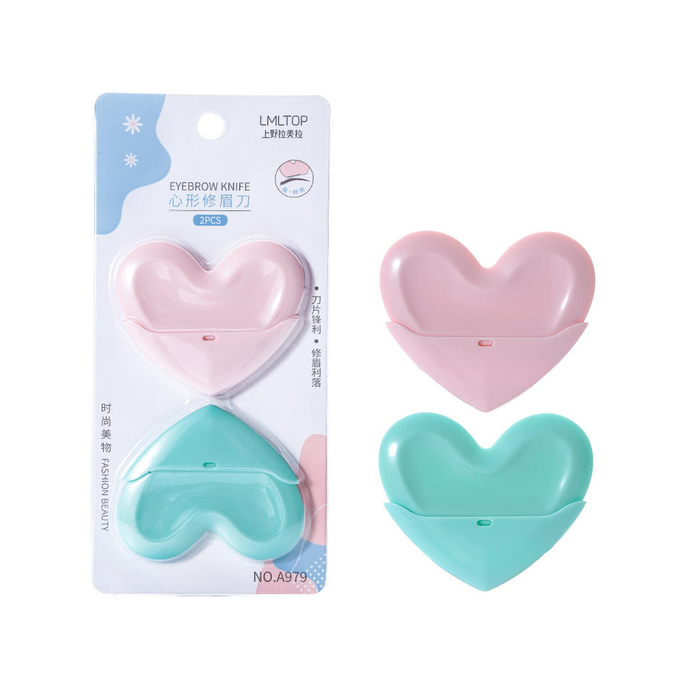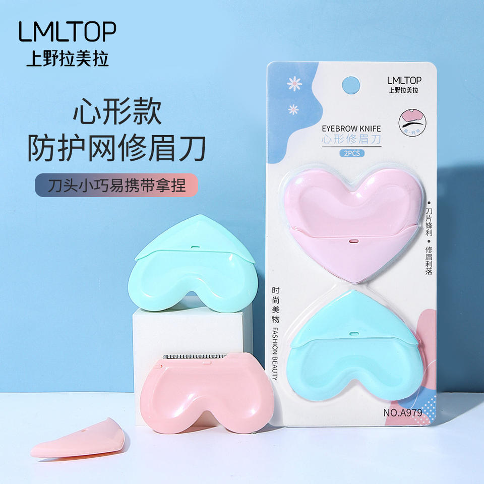 LMLTOP เครื่องเล็มขนคิ้วรูปหัวใจ 2 ชิ้น ฝาปิดเก็บของสแตนเลส ใช้งานง่ายสำหรับมือใหม่ A979