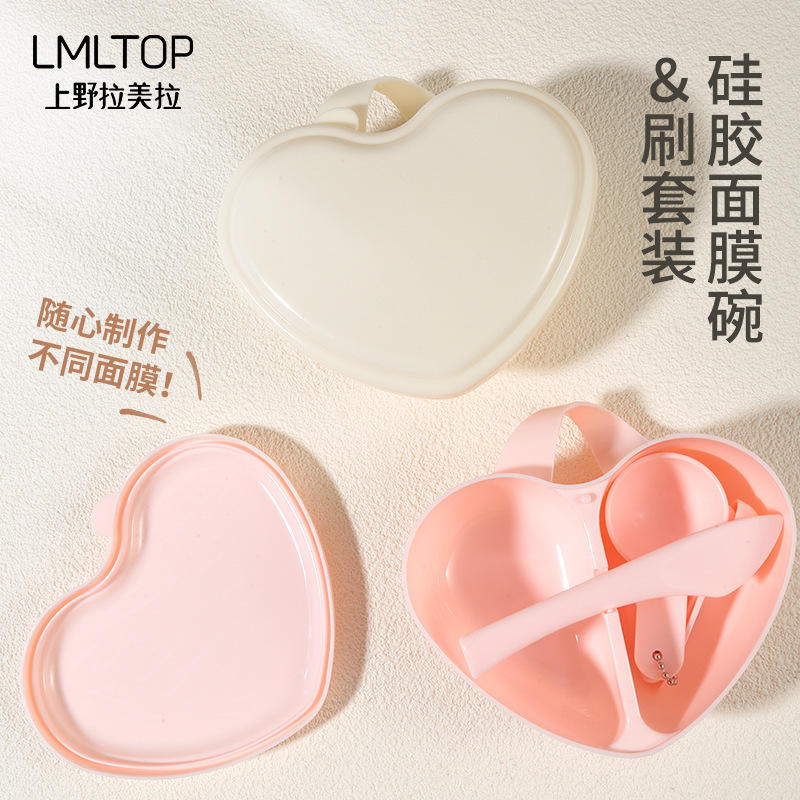 ชุดชามผสมรูปหัวใจ LMLTOP 5 ชิ้น พร้อมฝาปิด วัสดุ PP ป้องกันฝุ่น สำหรับทำมาส์กหน้า DIY