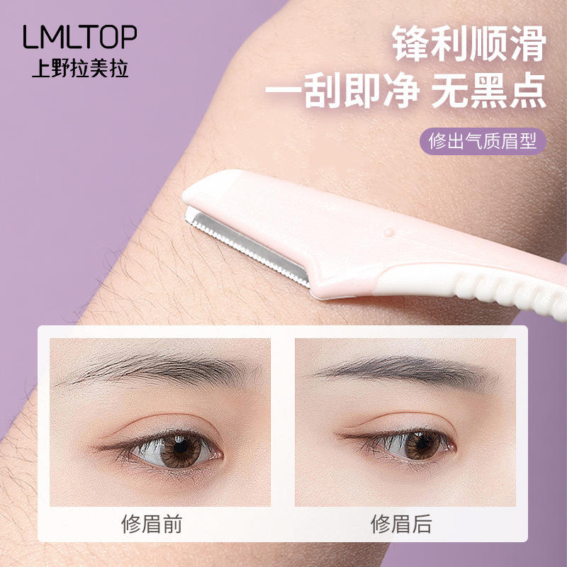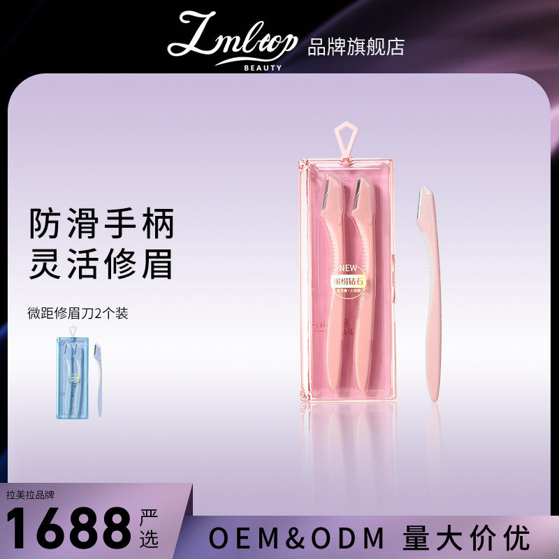 เครื่องเล็มขนคิ้วขนาดเล็ก LMLTOP แบบ 2 ชิ้น ปลายเฉียงทำจากสแตนเลส ดีไซน์กะทัดรัด สีฟ้าพาสเทล วัสดุ ABS