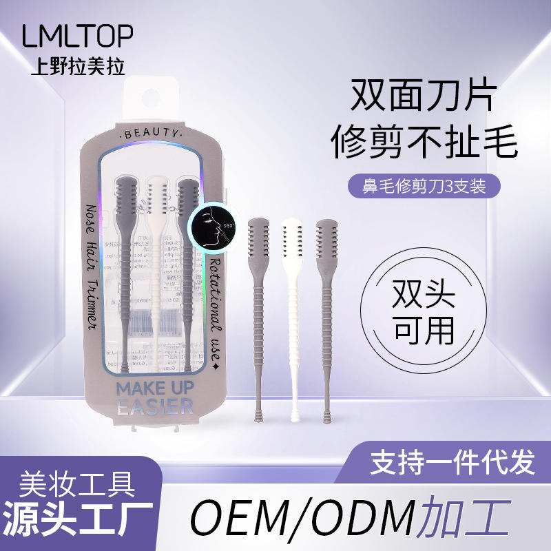 เครื่องเล็มขนจมูก LMLTOP ชุด 3 ชิ้น ทำจากสแตนเลส ใช้ได้สองด้าน หมุนได้ ใช้เป็นอุปกรณ์แต่งหน้า