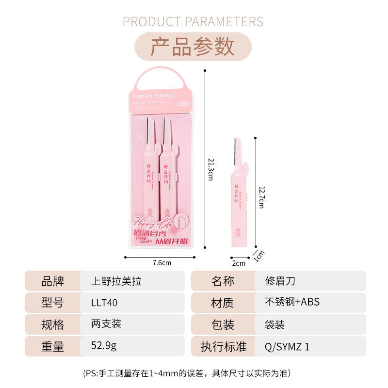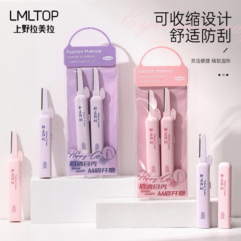 LMLTOP Telescopic Eyebrow Razor 2-Pack Stainless Steel Retractable Shaver With Protective Net Pink Purple