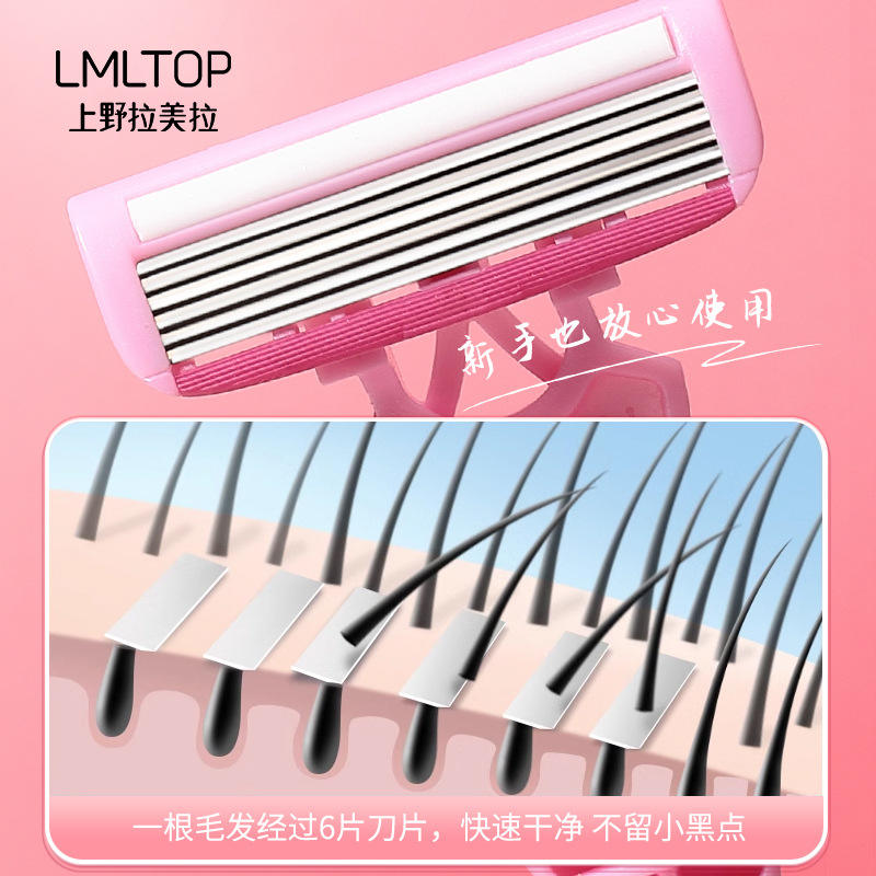 LMLTOP มีดโกนสำหรับผู้หญิง มีดโกนโกนขนแบบแมนนวล 6 ชั้น สแตนเลสสตีล รุ่น SY310