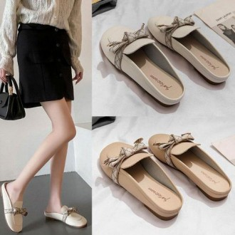 LND Luxury French Flats Women's Mules Indoor Slippers for Living Room Ribbon Design Formal Casual Shoes