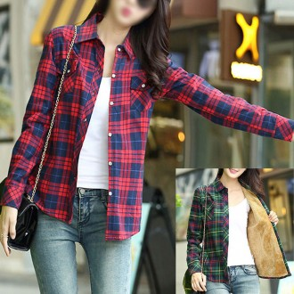 LND Women's Slim Check Fleece Blouse Elegant Southern-Inspired Shirt