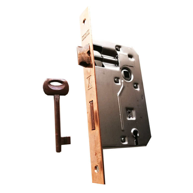 ล็อคสำหรับประตูไม้ 'สิทธิบัตร' ด้านหน้าขอบสี่เหลี่ยม bonaiti E40 bronzed