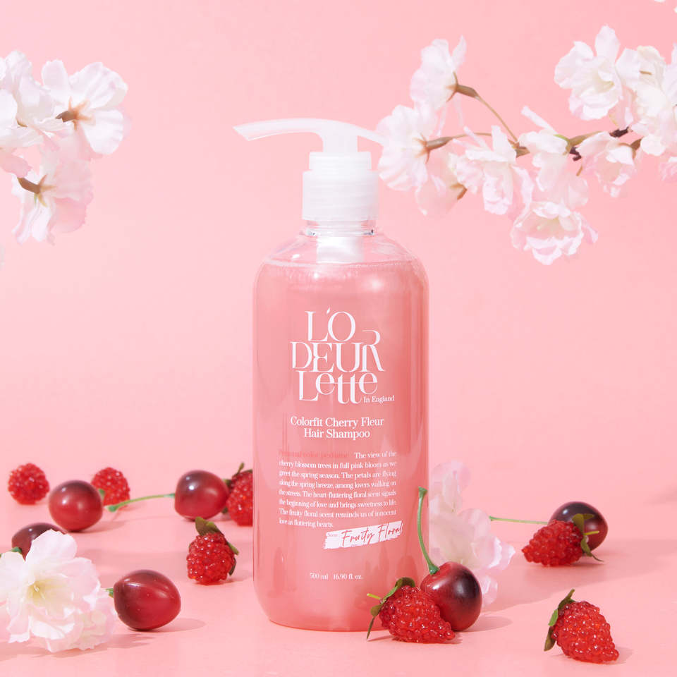 Lodeurlette แชมพูสำหรับผมสีเชอร์รี่เฟลอร์แชมพูกลิ่นดอกไม้สูตรเพิ่มวอลลุ่มทำความสะอาดประจำวัน1L
