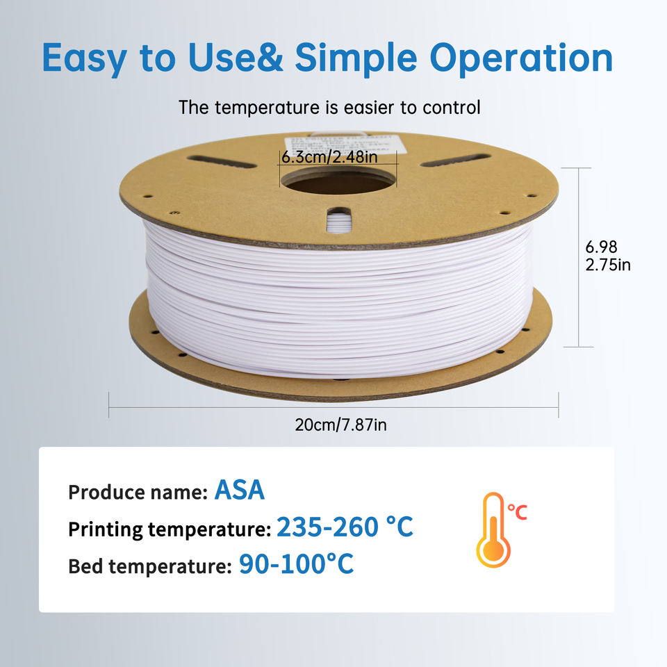 ไส้พิมพ์สามมิติ LONQI ASA ขนาด 1.75 มม. น้ำหนัก 1 กก. ทนรังสียูวี ทนความร้อนสูง สำหรับเครื่องพิมพ์สามมิติแบบ FDM ไส้พิมพ์สามมิติ ASA