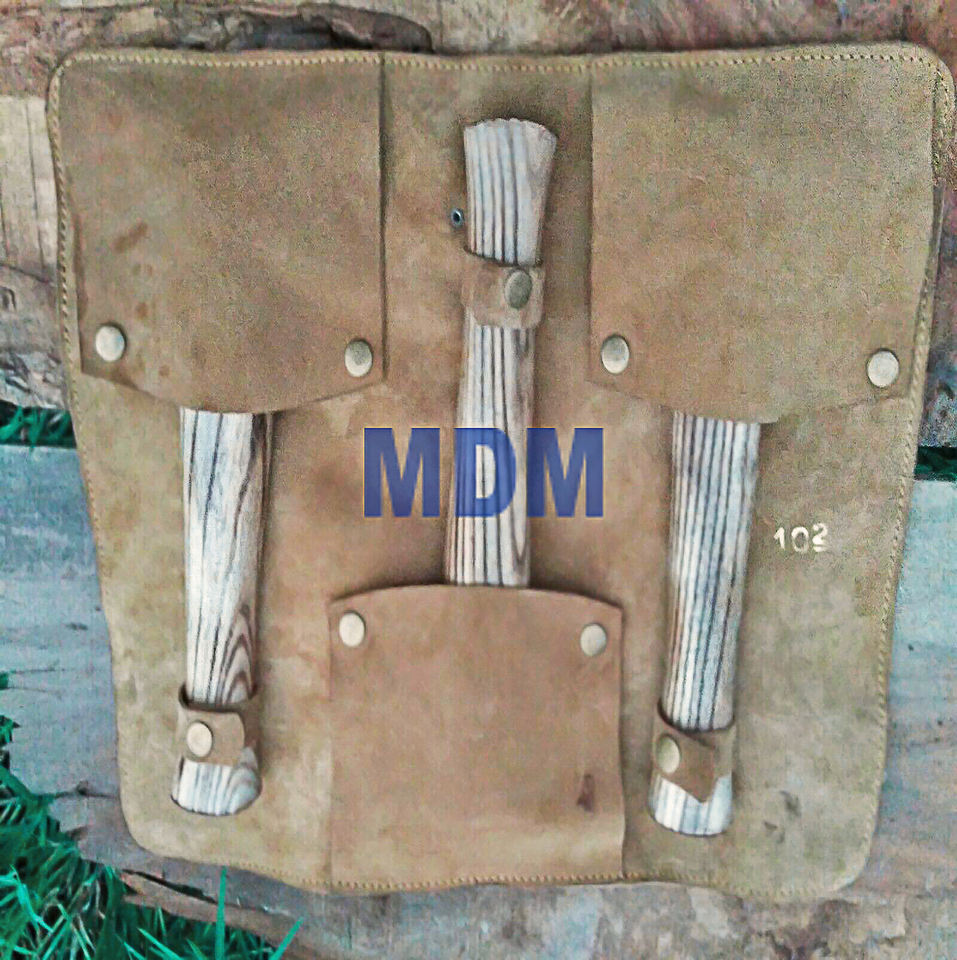 หัวขวานคู่แบบหล่อด้วยเหล็กกล้าคาร์บอนสูงทำด้วยมือพร้อมปลอกหนังจำนวน3ชิ้น