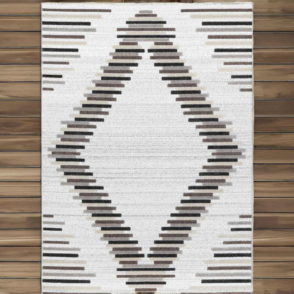 รักคือบ้านหินเพชรแอตติกาและพรมสีเทาลวดลายเรขาคณิตที่มีโทนสีกลางพรมนี้ผลิตโดยเครื่องจักร