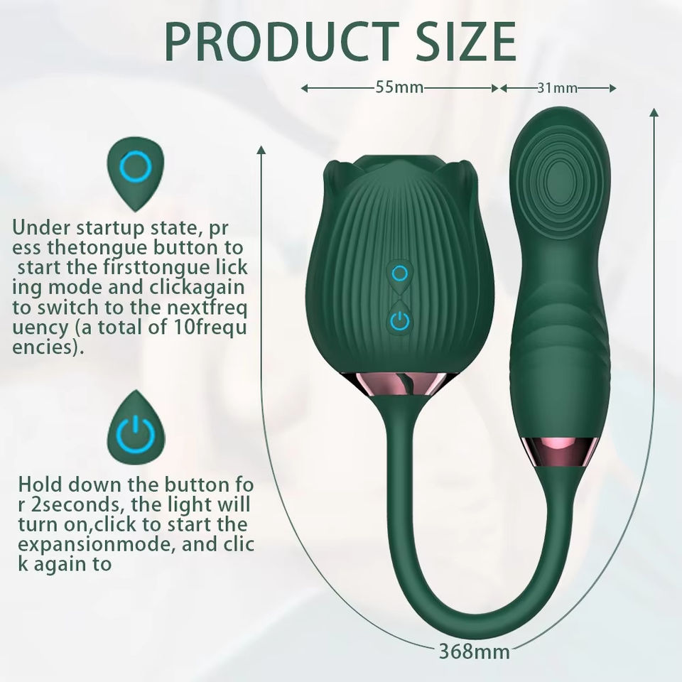 รัก.กุหลาบลิ้นเลียการสั่นสะเทือน2-in-1ของเล่นทางเพศสำหรับคู่รักเจาะคู่ดิลโด้คลิตอริสหัวนมกระตุ้น