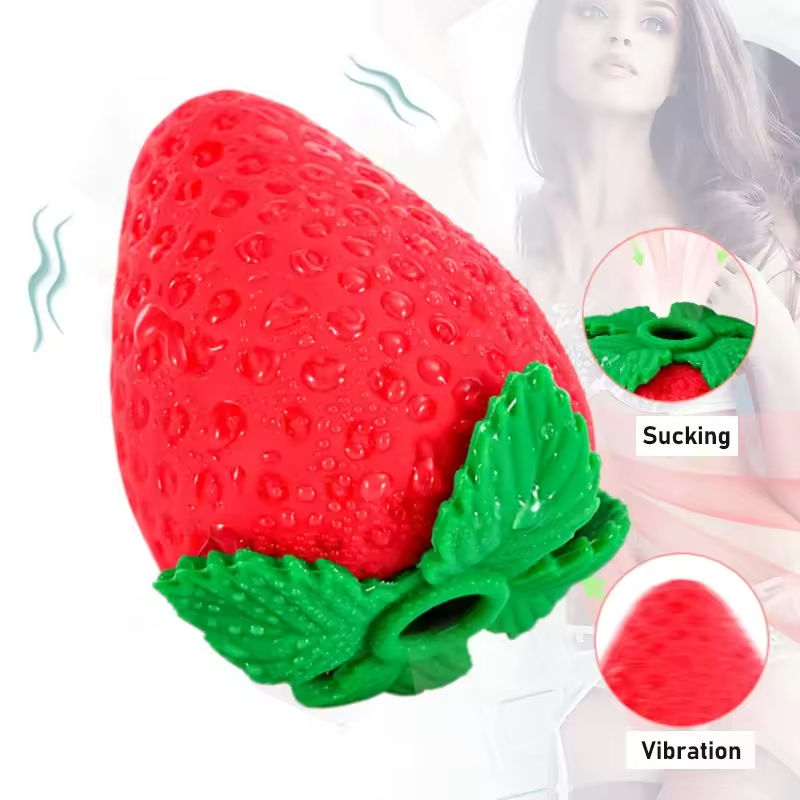 เครื่องสั่นรูปทรงสตรอว์เบอร์รี่ 10 ระดับความแรง ดูดสั่นสะเทือน กันน้ำ กระตุ้นหัวนม คลิตอริส ของเล่นทางเพศสำหรับผู้หญิง