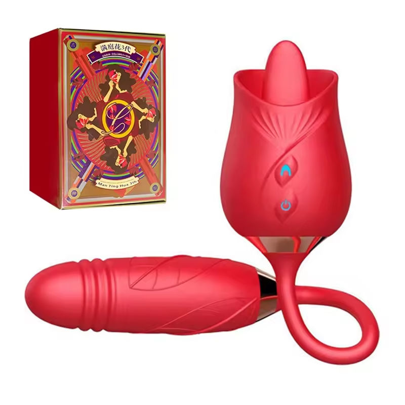 ของเล่นทางเพศรูปดอกกุหลาบสำหรับผู้หญิง พร้อมดิโด้สอดใส่ กระตุ้นคลิตอริส ดูดกระตุ้น รูปทรงดอกกุหลาบ ลิ้นรูปดอกกุหลาบ ดิลโด้ซิลิโคนสั่นได้