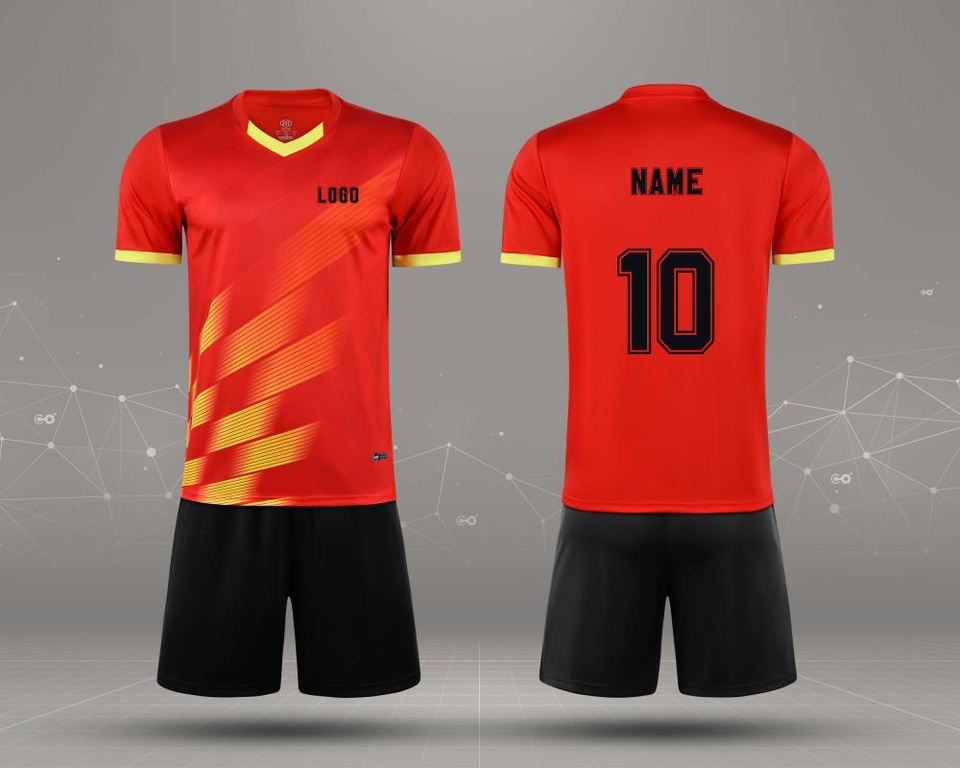 เสื้อกีฬาฤดูร้อนแบบยูนิเซ็กซ์ ระบายอากาศได้ดี ผลิตจากโพลีเอสเตอร์ แขนสั้น สกรีนชื่อได้ สำหรับฟุตบอล แห้งเร็ว ขั้นต่ำในการสั่งซื้อน้อย