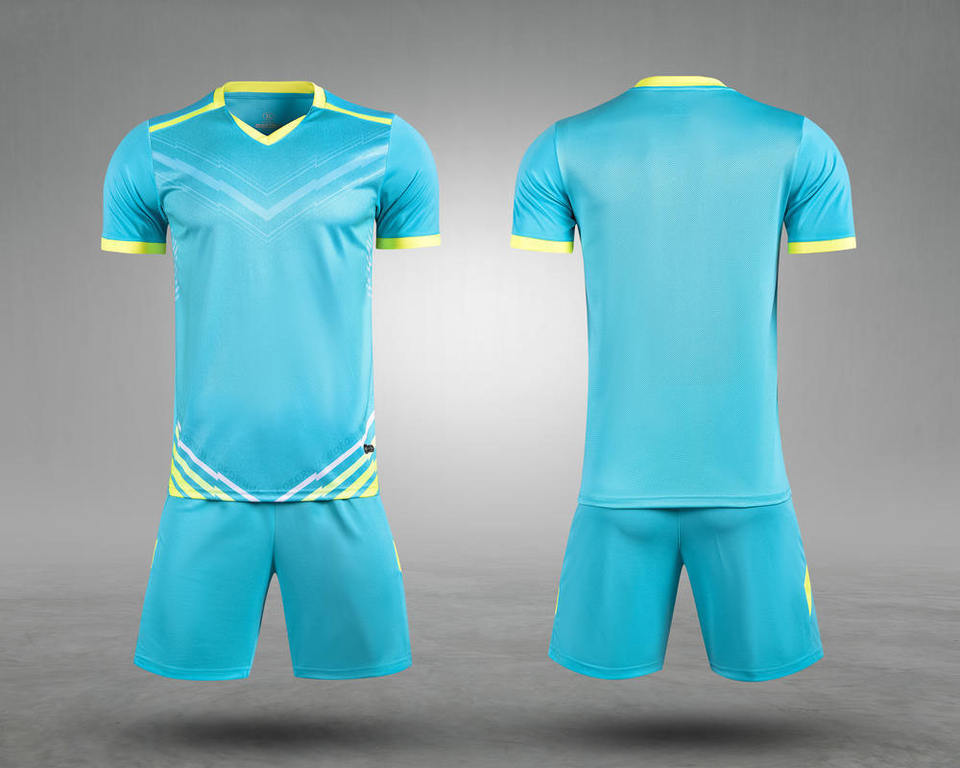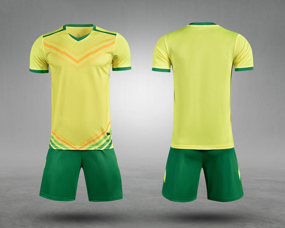 เสื้อกีฬาฤดูร้อนสำหรับผู้ชาย ระบายอากาศได้ดี ผลิตจากโพลีเอสเตอร์ พิมพ์ชื่อได้ ชุดฟุตบอลแห้งเร็ว MOQ ต่ำ