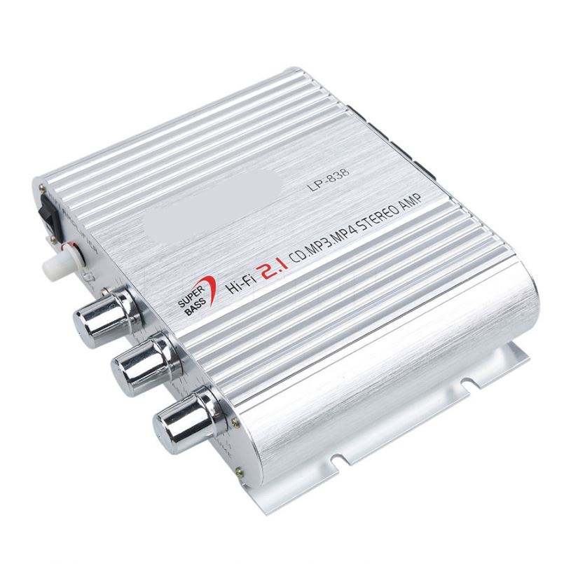 LP-838 Mni HiFi 2.1เครื่องขยายเสียงรถยนต์,เครื่องขยายเสียง12V 20W * 2 MP3 MP4เครื่องเล่นสเตอริโอซับวูฟเฟอร์เสียงอัตโนมัติ