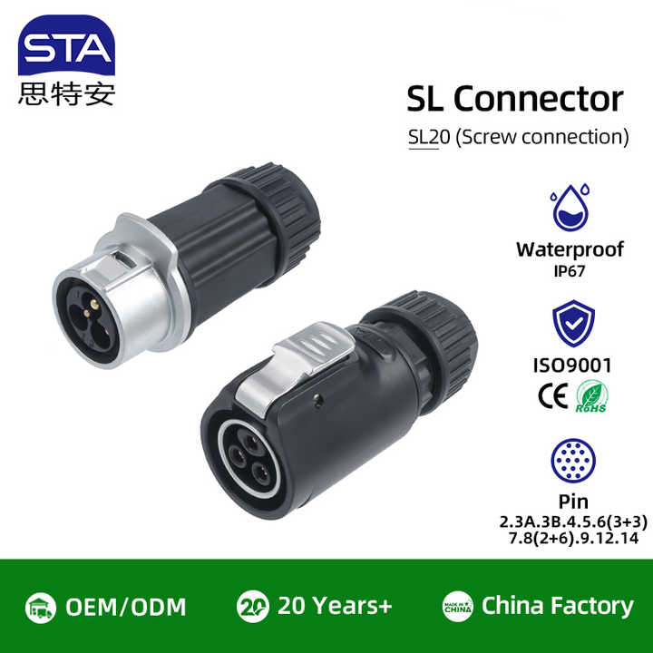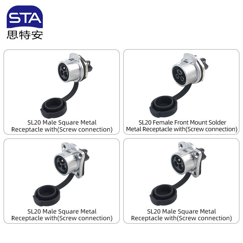ปลั๊กไฟฟ้าวงกลม LP20 แบบกันน้ำ IP67 พร้อมขั้วต่อสายเคเบิลแบบสกรูสำหรับการบิน ทำจากทองแดง 3 ขา