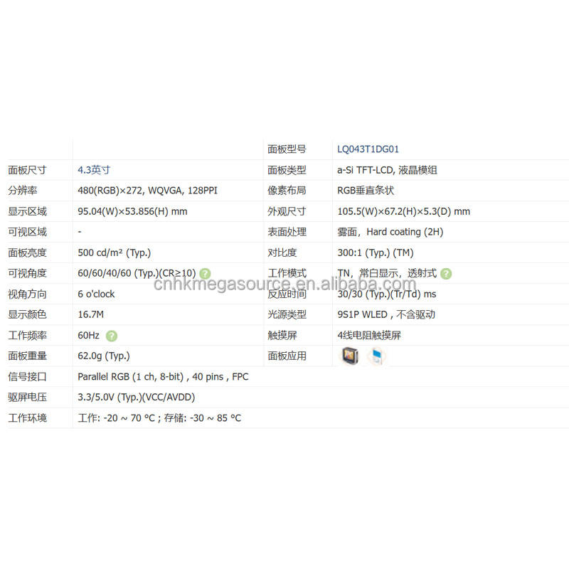 หมายเลขรุ่น: LQ043T1DG01