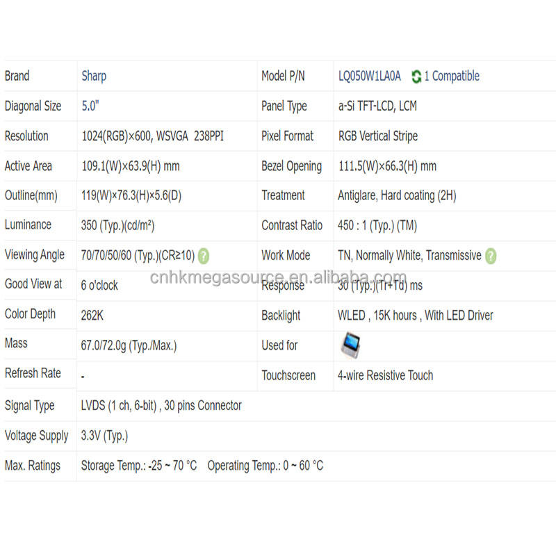 Model:LQ050W1LA0A