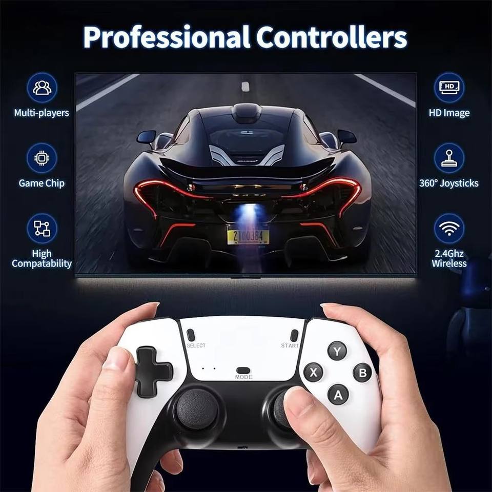 เครื่องเล่นเกมเรโทร LR M15 4K พร้อมเกมส์กว่า 20000 เกม ความจุ 64GB/128GB รองรับการเพิ่มความจุด้วย TF การ์ด 128GB จอยไร้สาย 2.4GHz อุปกรณ์เล่นเกมพกพาสำหรับทีวี