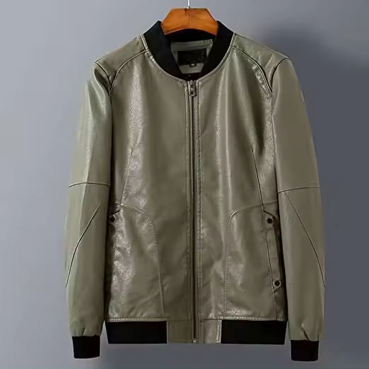 LR Men's 100% Genuine Lambskin Leather Jacket Distressed Zip-up Bomber with Embroidery Decoration for Winter Motorcycling
