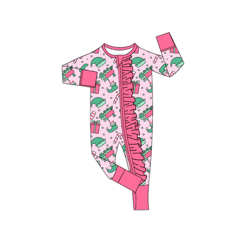 ชุดหมีแขนยาวสำหรับเด็กชุดหมีสำหรับนอนน่ารักสำหรับเด็กหมวกลูกอมคริสต์มาสสีเขียวออกแบบได้ตามต้องการ LR2670