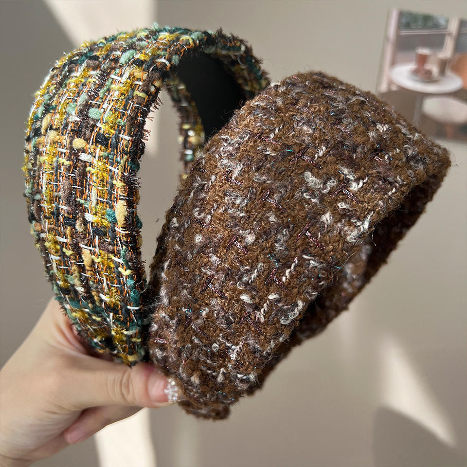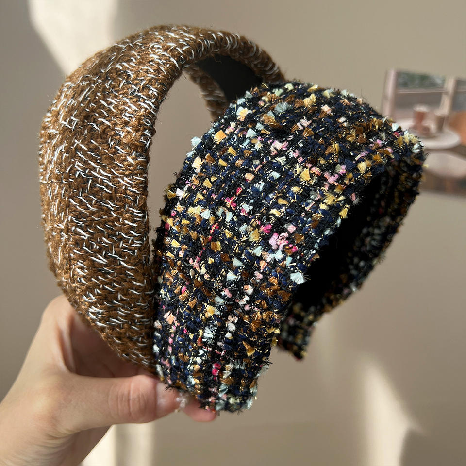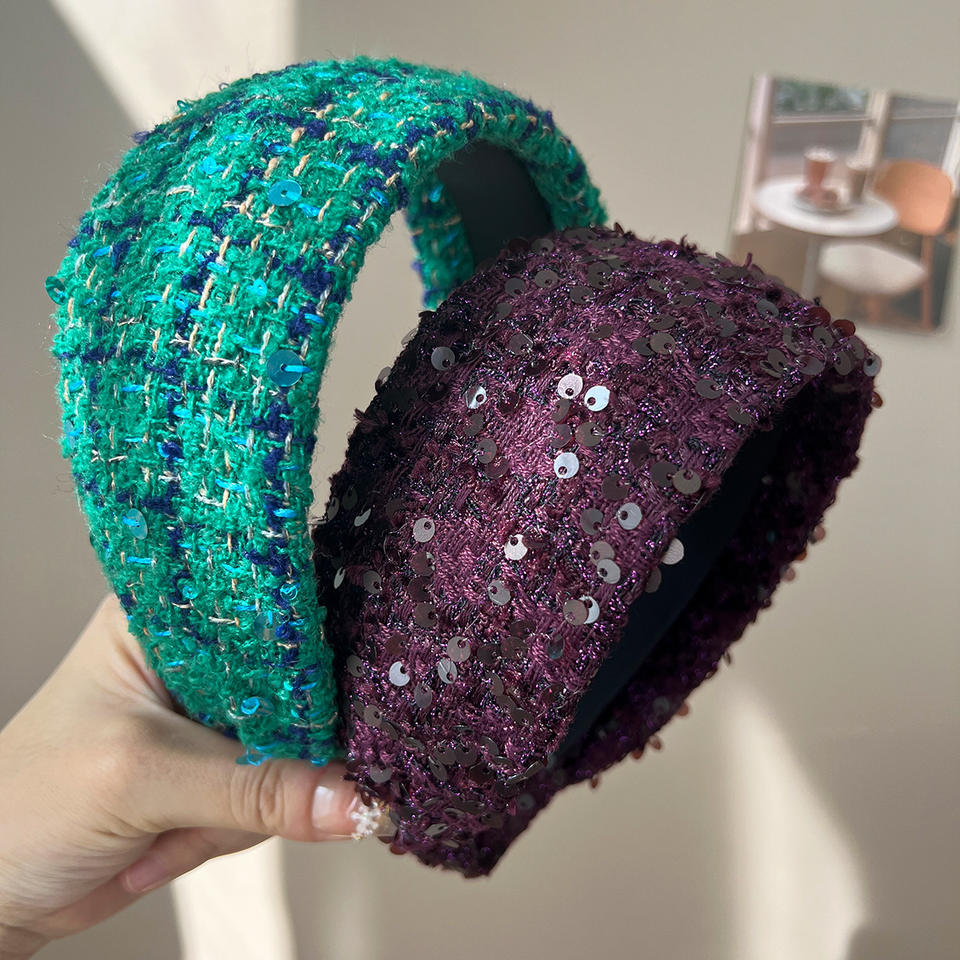 ที่คาดผม LRTOU แบบขายส่ง สไตล์ยุโรปและอเมริกา แฟชั่นที่คาดผมแบบกว้าง ถักจากไหมพรม ประดับเลื่อม สำหรับผู้หญิง