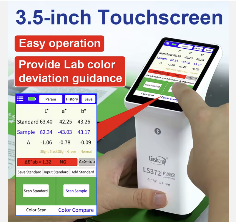 LS372 หน้าจอสัมผัสขนาด 4 มม. เครื่องวัดสีแบบควบคุมผ่านแอพพลิเคชั่น เครื่องวัดความแตกต่างของสี CIE LAB
