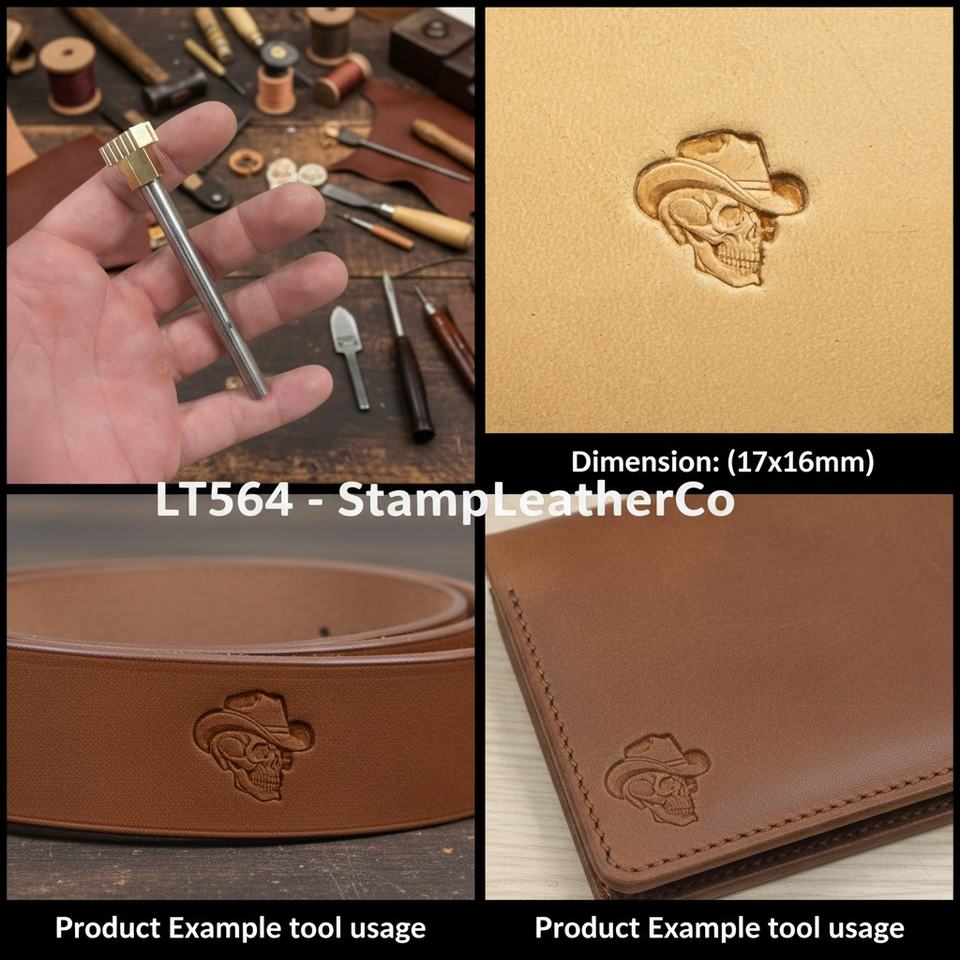 แสตมป์หนัง LT564พร้อมหมวกคาวบอยกะโหลกขนาด17x16มม. งานฝีมือหนัง2/3 "x 5/8"
