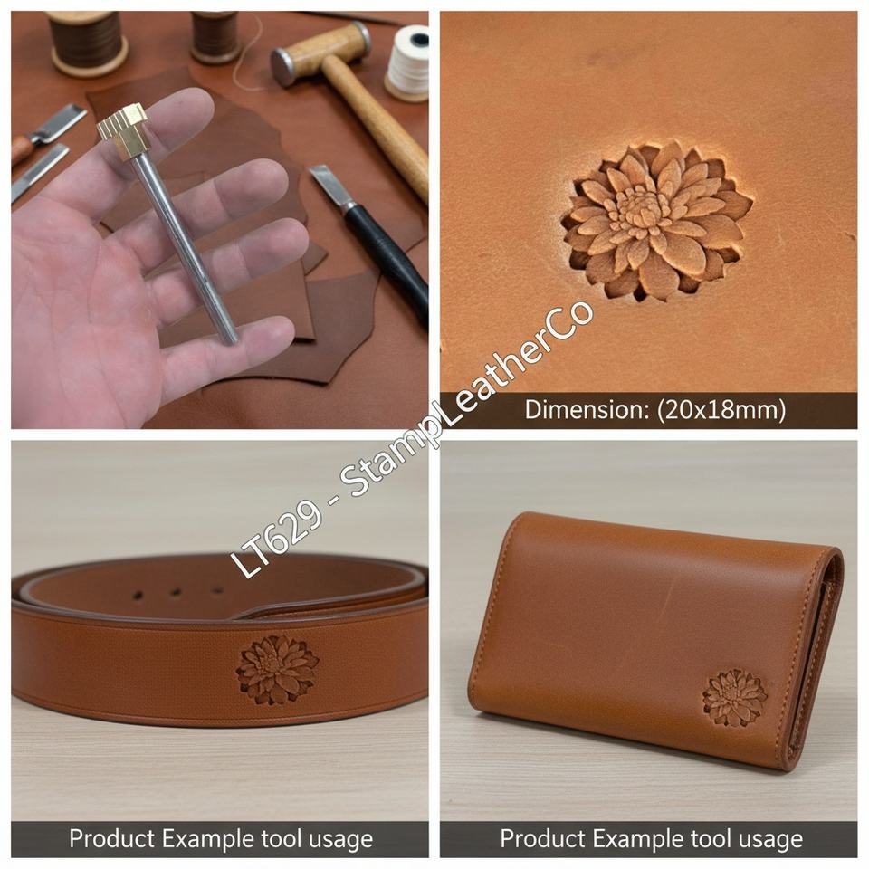Stamp-20x18mm ดอกเบญจมาศสำหรับงานฝีมือทำจากหนัง LT629 (11/14 "x 5/7")