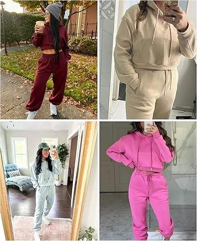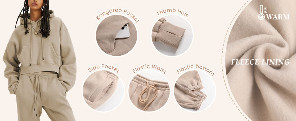 ชุดเซ็ต 2 ชิ้นสำหรับผู้หญิง LTSCNRM เสื้อฮู้ดครอปผ้าฟลีซ เสื้อสเวตเชิ้ต กางเกงจ็อกเกอร์มีกระเป๋า